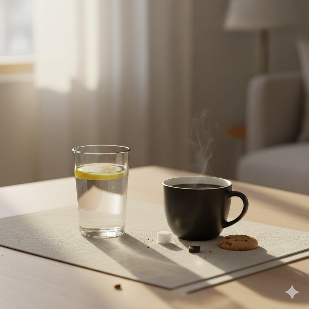 일단 물 마시고 30분 뒤에 커피 마시는 걸로 타협 중인데, 이것도 잘 안 지켜짐.